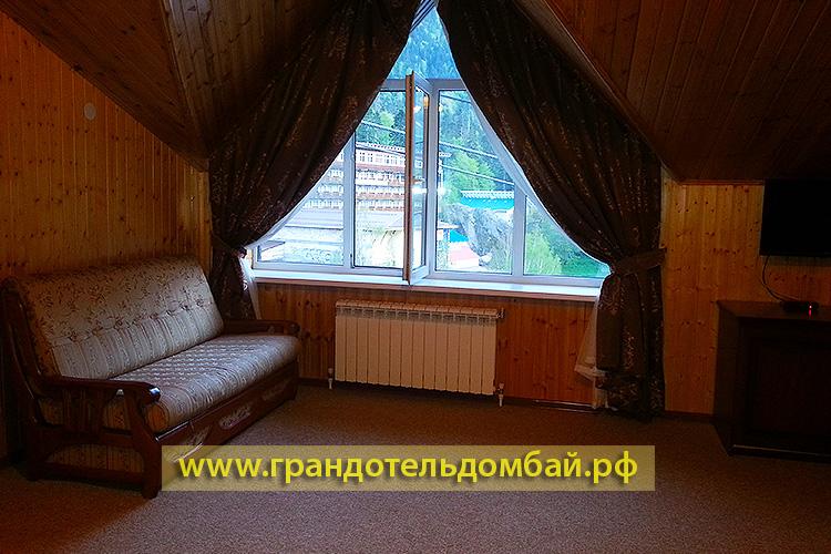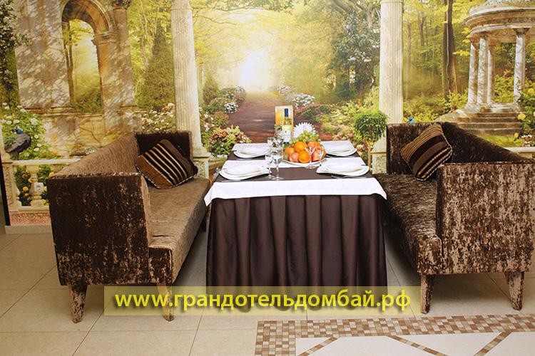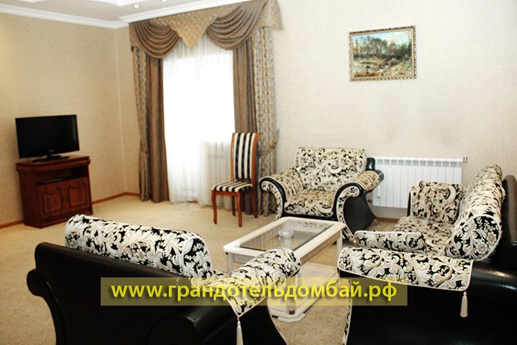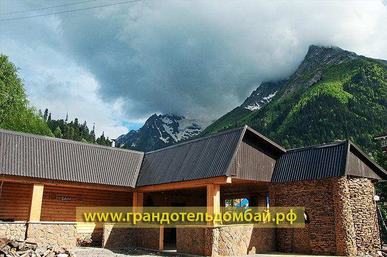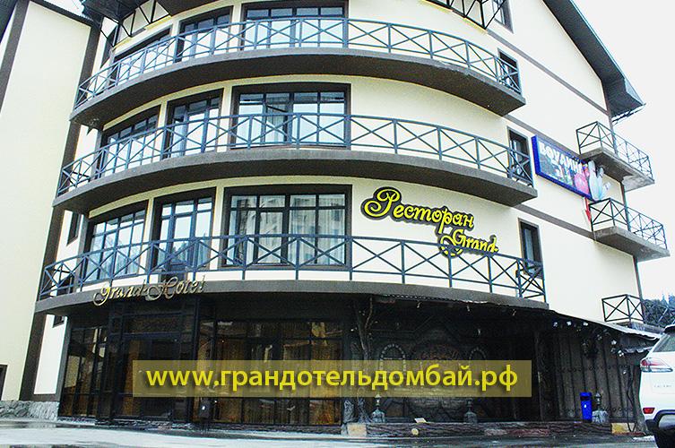 Одна из новостроек всесезонного курорта Домбай, который совмещает в себе горнолыжный курорт и летний отдых — это отель «Гранд Отель». Отель построен и сдан в эксплуатацию 30 декабря 2008 года. При проектировании отеля были учтены все последние разработки в области строительства, дизайна, интерьера таких объектов. Роскошные номера с дорогой мебелью и интерьером в стиле «Элит-класс». Но, тем не менее, отель демократичен по ценам и весьма доступен по ценам. В отеле работают: конференц зал, турецкий хаммам, боулинг, шашлычная, бассейн с тремя уровнями глубины, Wi-Fi, финская сауна, русская баня, спорт бар, бильярд, телефоны внутренней связи во всех номерах, сейфы во всех номерах, собственный трансфер. В настоящее время отель располагает 76 номерами различной категории. Отличным рестораном. Для отдыхающих в нем созданы все условия для комфортабельного и безопасного отдыха. Рядом с отелем есть автостоянка. Очень большое удобство в том, что от дверей отеля до гондольной современной канатной дороги всего 20 метров. До первой очереди ККД 50 метров, до учебного склона «Лягушатник» 20 метров. Рядом расположен небольшой рыночек со всевозможными товарами местных умельцев.